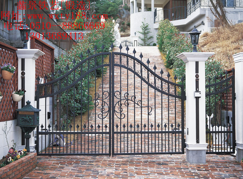無錫鐵藝護欄廠專業鐵藝大門設計制作,有豐富的豪華大門,超級大門制作設計經驗,本款大門典雅大氣,采用加粗實心鍛鋼制作,經熱鍍鋅處理確保戶外風雨裸曬20年不脫漆,不生銹。